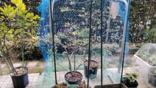 テラス菜園 鳥よけネットを張りました 昨年、ブルベリーの蕾をついばんでいる鳥を発見したため、今年は早めにネットを張りました。テラス全面の白いネットで視界が悪かったため、今年はブルベリーだけを囲う形に変えてみました。白いネットはイチゴを守ります。今年も鳥たちとの知恵比べが始まりま... テラス菜園